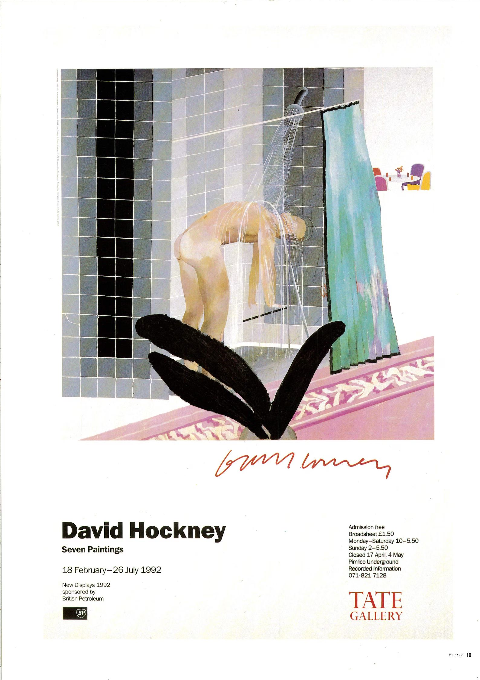A 1992 poster for a Hockney show at Tate Gallery that features the artist’s "Man in Shower" painting.