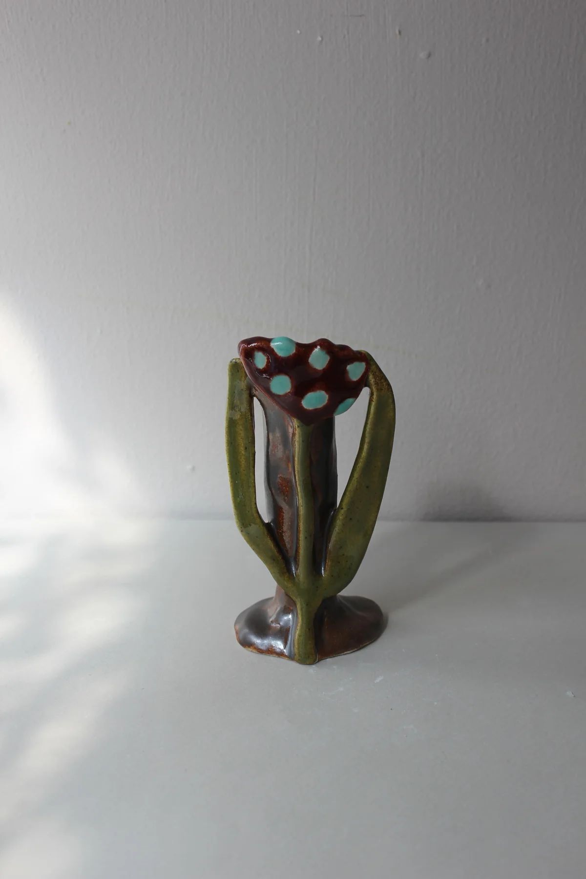 A vase? A candlestick holder? Yes. And it’s a spotted tulip.