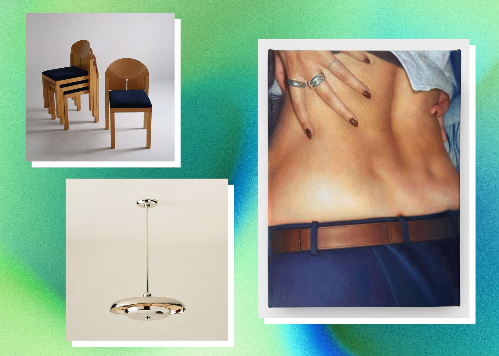 Plus: Mohair dining chairs, a Jesse Zuo painting, striking nickel pendants, a high-design Samsung speaker and more.